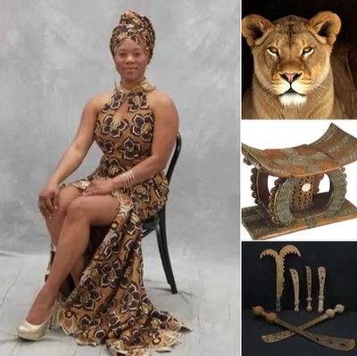 Okofohemma (Warrioress Queen) Sakomufo Akosua Tanisha Boduaa Seshat Aaebo-Akhan, Asante indigenous asuman (talisman) name - Mama Owo Kokoo Nduru (Mama Red Snake Medicine), is an indigenous Akan (Asante) American descendantess of royal Akan (Asante & Akwamu) Americans who voluntarily migrated to North America prior to the enslavement era, which includes the "Lansing Man" - whose 35,000 year old indigenous Akan (Asante) American skeletal remains were discovered in Lansing, Kansas in 1902.